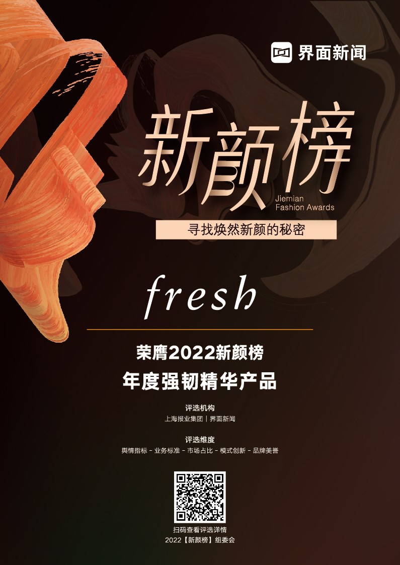11月1日,由上海报业集团|界面新闻主办的【界面时尚力峰会】于深圳举办,会上公布了2022【新颜榜】终榜名单并为获奖品牌及企业颁发奖杯。fresh馥蕾诗火山茶精华凭借其优秀的品牌表现力荣获2022【新颜榜】年度强韧精华产品。