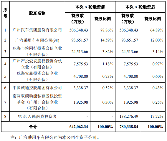 今年3月,埃安曾完成一轮小范围融资。一位后来参与了A轮融资的投资机构人士赵佳来对深途说,当时都是国资背景的才能进,还有少部分员工股权激励,外部投资机构没有机会参与。