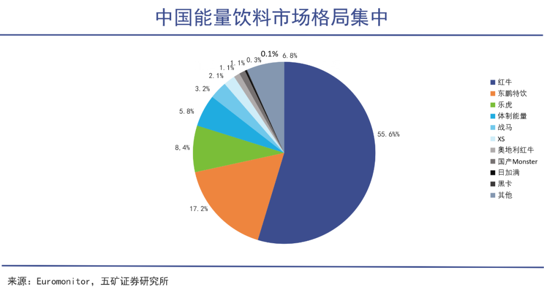 东鹏特饮正式进入功能饮料领域是2003年。彼时红牛基本占据了九成的市场份额,可以说是一家独大。而中国红牛的销量在2015年见顶后,就开始出现停滞甚至下滑,东鹏特饮、乐虎(达利食品旗下)、体质能量(河南中沃)则趁势追赶。