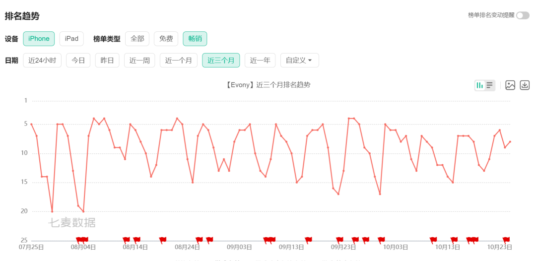 《Evony》最近三个月畅销榜成绩