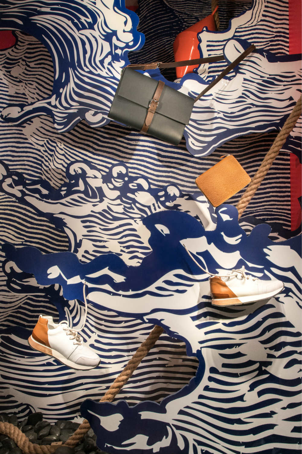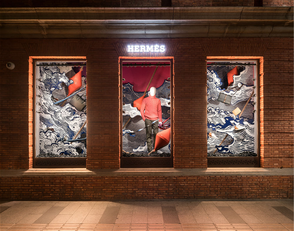 不过,正因为没有太多经验,反而给了Pierre Roy-Camille迸发出新想法的空间,就好比橱窗底部铺洒的树叶和漂浮在“海面”上的浮标。“现在看来,在空间的利用、排布方面我们做得还挺不错。你既可以近距离看每个细节,从马路对面看来,橱窗就像副完整的画作。”