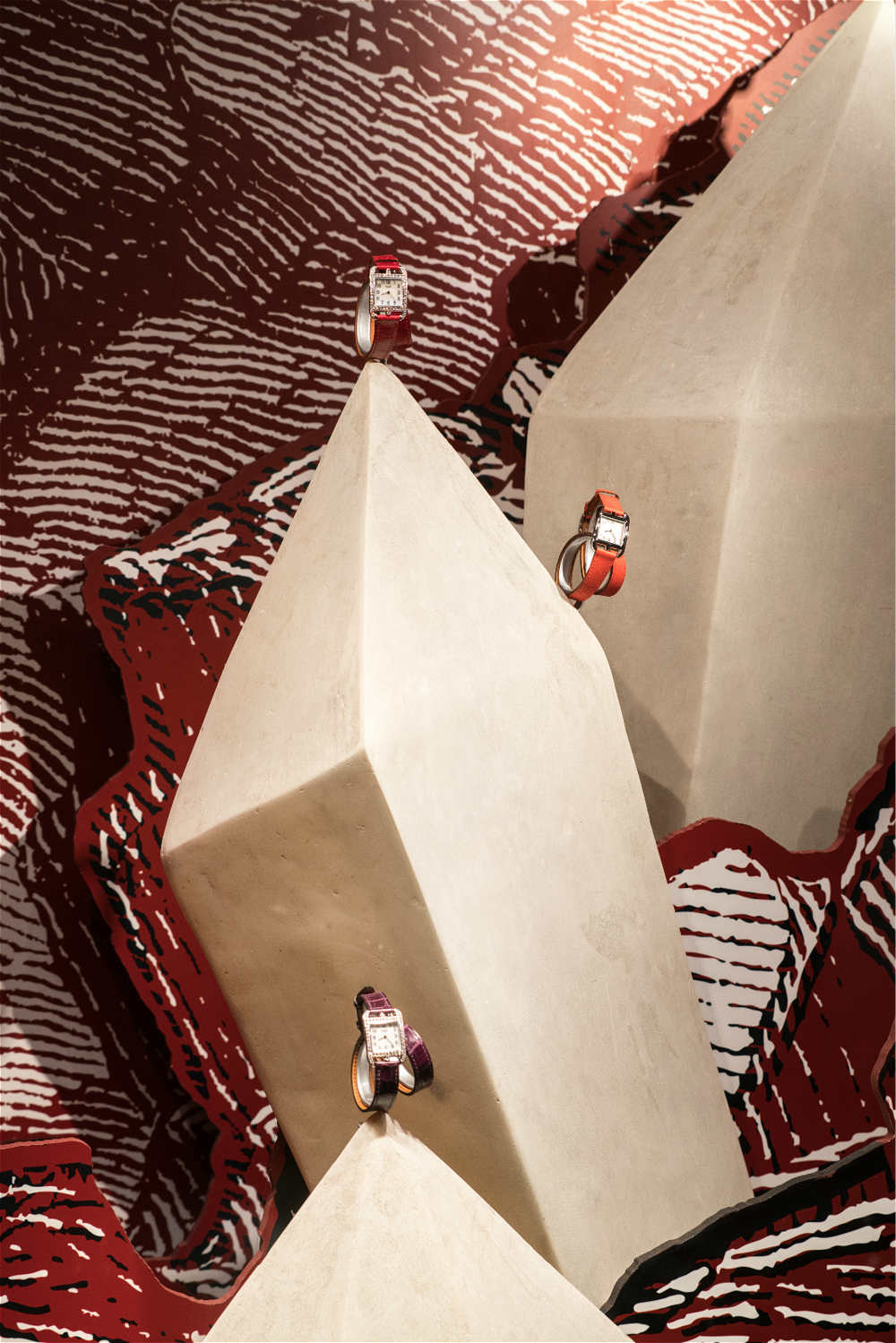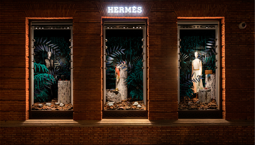 “爱马仕倒没有给关键词。”他把植物、水和岩石是那种元素装进了橱窗,取名为“森海奇石”。秋季橱窗分为三部分:热带丛林、海洋探险与火山岩。在淮海中路法式梧桐婆娑掩映之下,橱窗内浓烈的异域色彩让行人很难忽略。