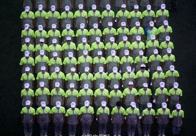 重庆一高校军训穿荧光衣 晚上不用开灯啦