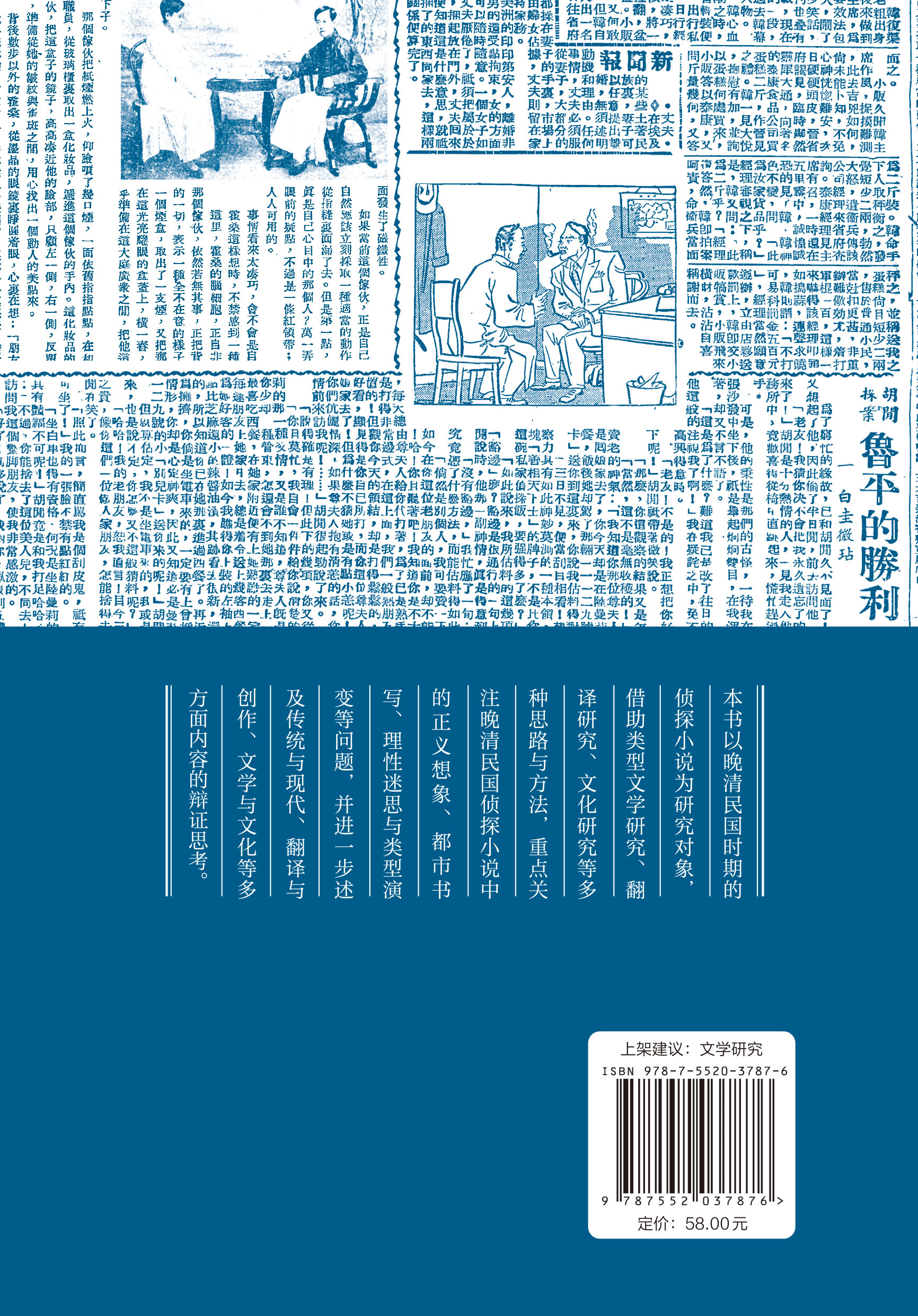 封底用的主要是1947年《新上海》周报第六十三期的报纸页面,在这一期周报上,赵苕狂开始连载他的“胡闲探案”系列小说《鲁平的胜利》。他的这个小说系列走的是滑稽侦探的路子,有点类似于今天《唐人街探案》的侦探喜剧类型,和“一青一红”的正统侦探或侠盗故事都不一样,我称其为民国侦探小说的第三种发展路径。