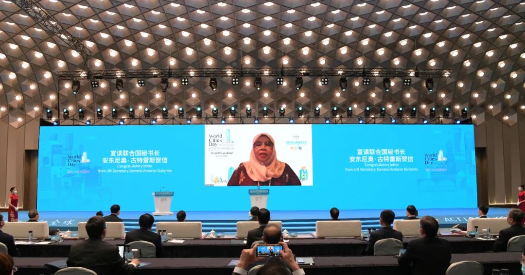 上海市委书记陈吉宁宣读贺信并讲话。联合国秘书长安东尼奥 古特雷斯发来贺信。住房和城乡建设部部长倪虹,上海市委副书记、市长龚正,联合国副秘书长、人居署执行主任麦慕娜 谢里夫,联合国副秘书长李军华分别致辞。上海市人大常委会主任蒋卓庆出席。