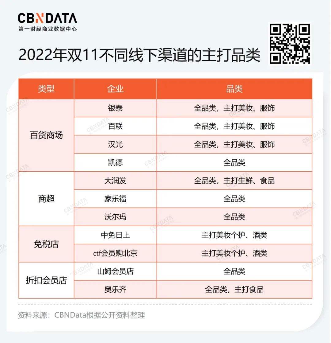从品类来看,线下渠道双11的主打品类延续了平日的强势品类。比如百货商场主打美妆和鞋服,免税店主打美妆和酒类,大润发等超市以食品生鲜主打,奥乐齐则主打食品。