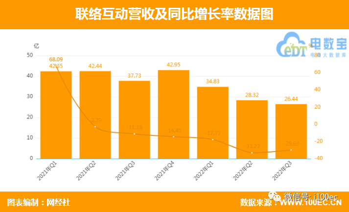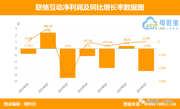 10月31日,联络互动发布2022年第三季度报告。报告显示,联络互动第三季度营业收入26.44亿元,同比下降29.93%;归属于上市公司股东的净利润亏损3.40亿元;归属于上市公司股东的扣除非经常性损益的净利润-1.66亿元;基本每股亏损0.16元。