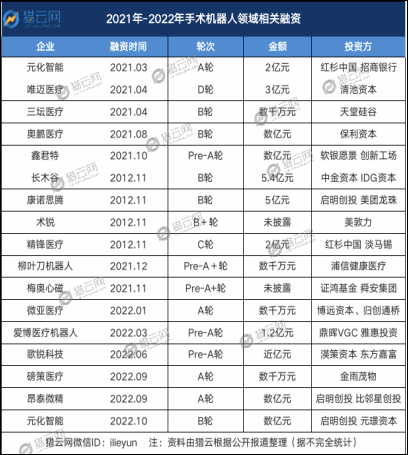 2021年11月,国内知名手术机器人独角兽微创机器人登陆资本市场,市值一度超400亿元,成为2021年医疗器械行业市值最高的IPO。