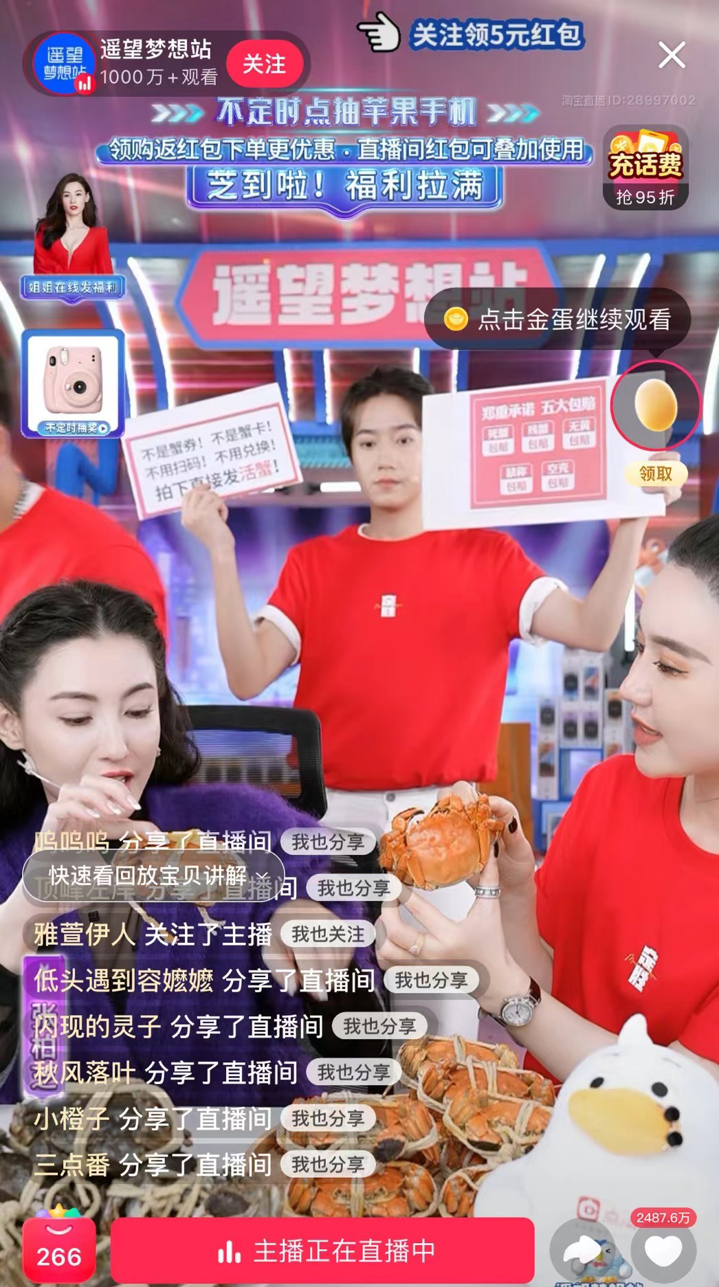 遥望科技同样在10月24日在直播间“遥望梦想站”天猫双11直播首秀。当晚,张柏芝、姜潮、麦迪娜等一众遥望合作艺人都作为“飞行嘉宾”嘉宾现身直播间。