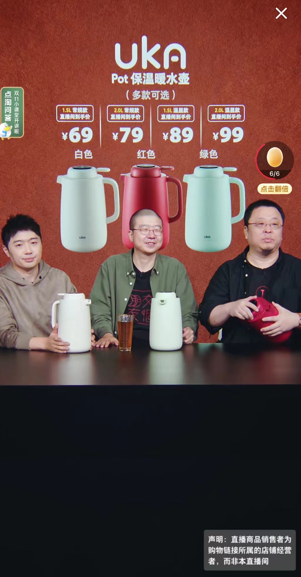 根据交个朋友的官方预告,今年双11期间,罗永浩会以“代言人”角色参与6场淘宝直播,其他时间由交个朋友直播团队完成。总体来看,不管是选品还是直播的内容模式,都跟抖音直播没什么区别。