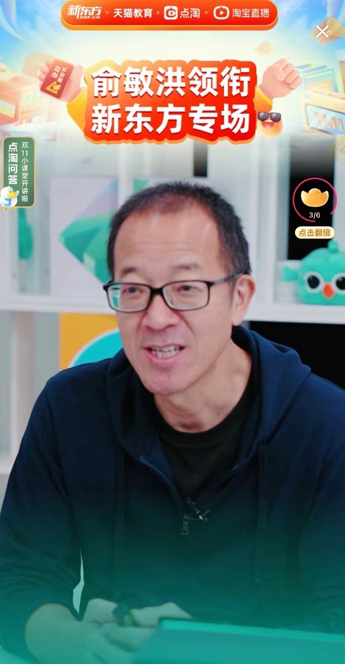“上大学不仅是为了找工作,更是为了获得不被工作局限的权利。”双十一正式开售的第一晚,俞敏洪坐在直播间里说道。在这个寸光阴寸金的时间段里,首次来到淘宝直播的俞敏洪,没有卖货,反倒是跟大学生谈起心来。