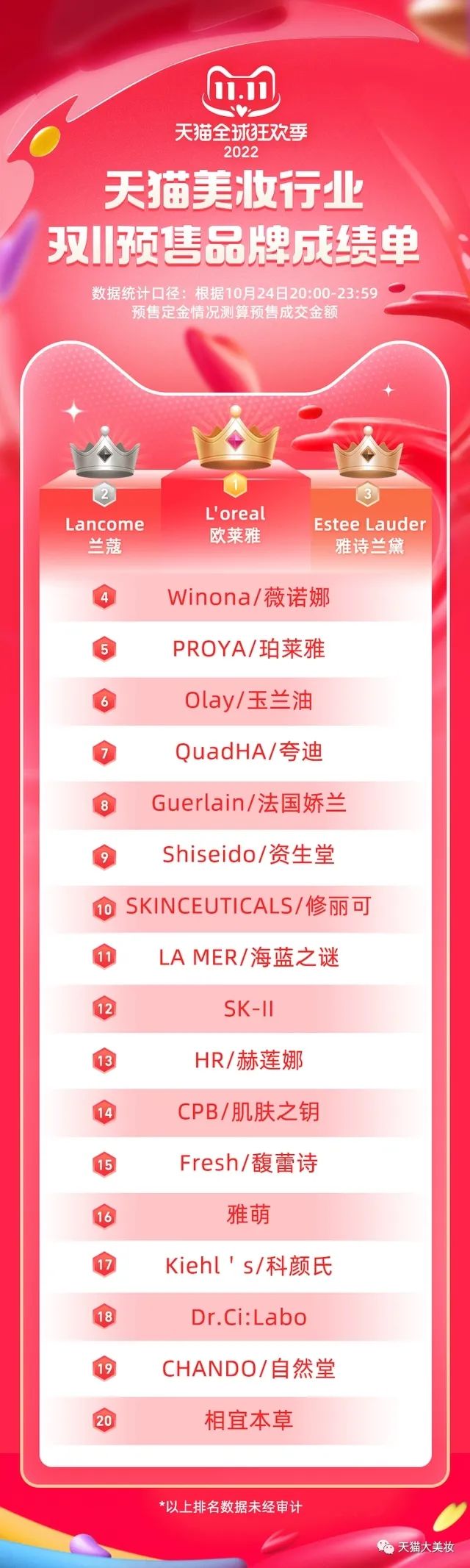 10月24日晚8点,天猫双11预售正式开启。预售的前4小时,国货美妆品牌薇诺娜,与国际品牌欧莱雅、兰蔻、雅诗兰黛一并成为4个成交破10亿的品牌。