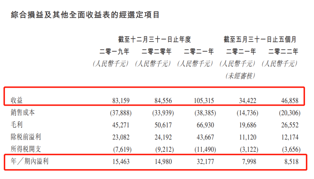 年内溢利分别为0.15亿元、0.15亿元、0.32亿元和0.085亿元。同期经调整后年内纯利分别为0.23亿元、0.26亿元、0.34亿元和0.11亿元,调整后纯利率分别为27.6%、30.4%、32.7%和24.5%。
