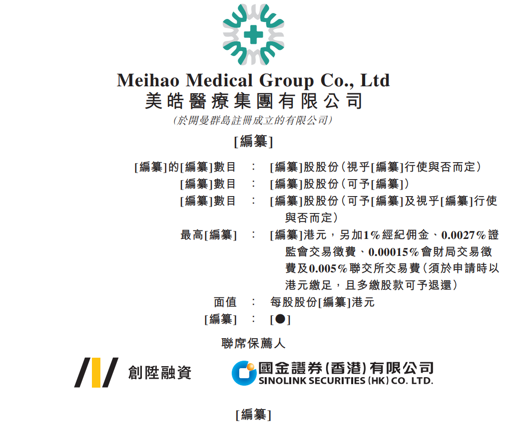 10月31日,港交所官网显示,美皓医疗集团有限公司(下称“美皓医疗”)递交了招股书,拟冲击港股上市,创陞融资和国金证券(香港)有限公司担任联席保荐人。