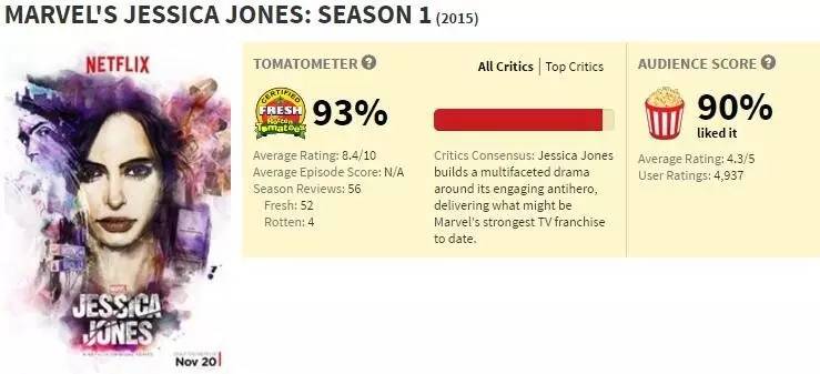 至今已经出品的《超胆侠》《杰西卡·琼斯》,收视口碑双重炸裂。