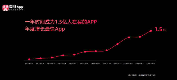 淘特承载着阿里巴巴在下沉市场狙击拼多多的重任,在阿里集团重金押注下,淘特的确完成了快速成长,用不到一年时间,实现了月度活跃用户破亿和年度活跃购买用户过亿。