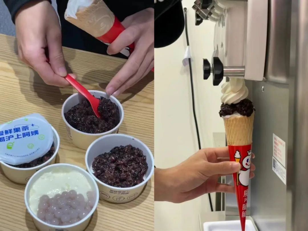 很多网友还外卖下单蜜雪冰城脆筒和茶百道、沪上阿姨的奶油、血糯米等材料在家diy;前两天,沪上阿姨在官方微博发出热奶宝制作教程,评论区热闹非凡,消费者纷纷评论“要去试试”。
