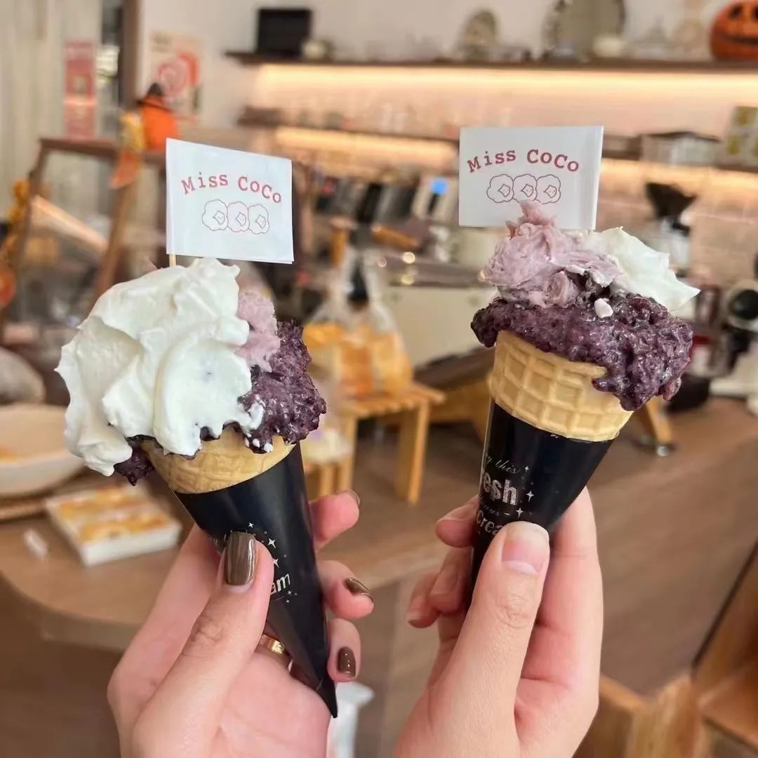 但口感却丝毫不输冰淇淋,一层奶乎乎的奶油顶,一层糯唧唧的血糯米,再加上香脆的甜筒,软糯口感,奶味十足,也被称为冬日“热”淇淋,单价4~8元。