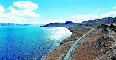 在位于西藏山南市浪卡子县羊卓雍错以南的普莫雍错,巨大的湖面被群山环绕,海天相接,美不胜收。徐道超摄/光明图片