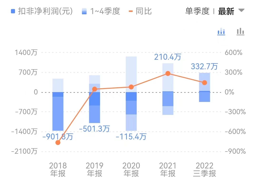 从今年前三季度来看,尽管公司归母净利润超过1200万元,但扣非净利润仅有332.7万元。其原因在于,计入当期损益的政府补助高达971.56万元,其中仅今年上半年就收到政府补助730万元。