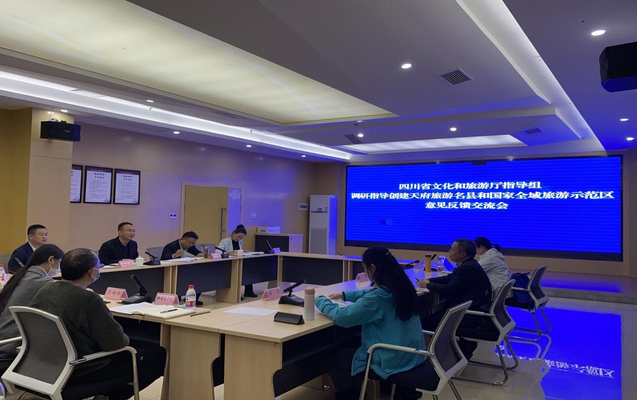 在交流座谈会上,专家组一行观看了平昌文旅宣传片、平昌县全域旅游示范区创建专题片,听取了平昌旅游发展及创建工作情况汇报,专家组一行针对检查中发现的问题进行了反馈,并对标提出了建议。