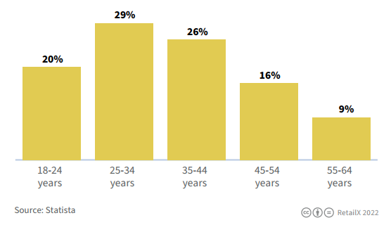 与互联网普及率趋势相近,巴西的线上购物者往往比较年轻。有接近一半(49%)的巴西购物者年龄在35岁以下,也有9%的人是55岁或以上。2021年,巴西人平均网络消费397美元,这一数字在2019年只有245美元。