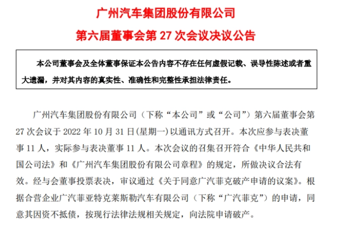 破产这一幕,开始在传统合资车企上演。近日,Stellantis集团发布公告称,广汽菲克、广汽集团和Stellantis的股东已批准一项决议,同意广汽菲克在处于亏损的情况下向法院申请破产。