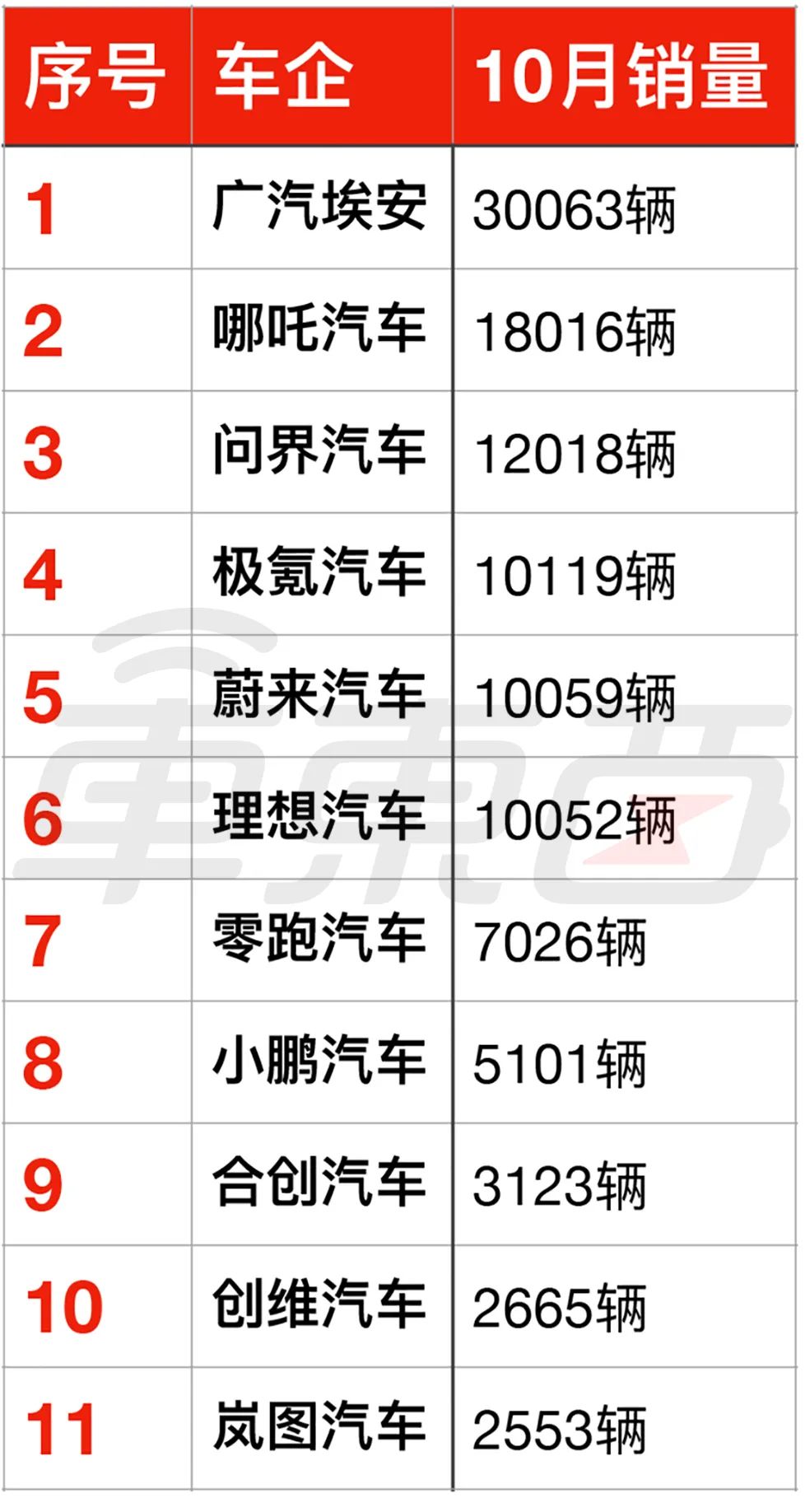 车东西对已经公布10月份新能源汽车销量的车企数据进行了整理,找到了更多的信息。