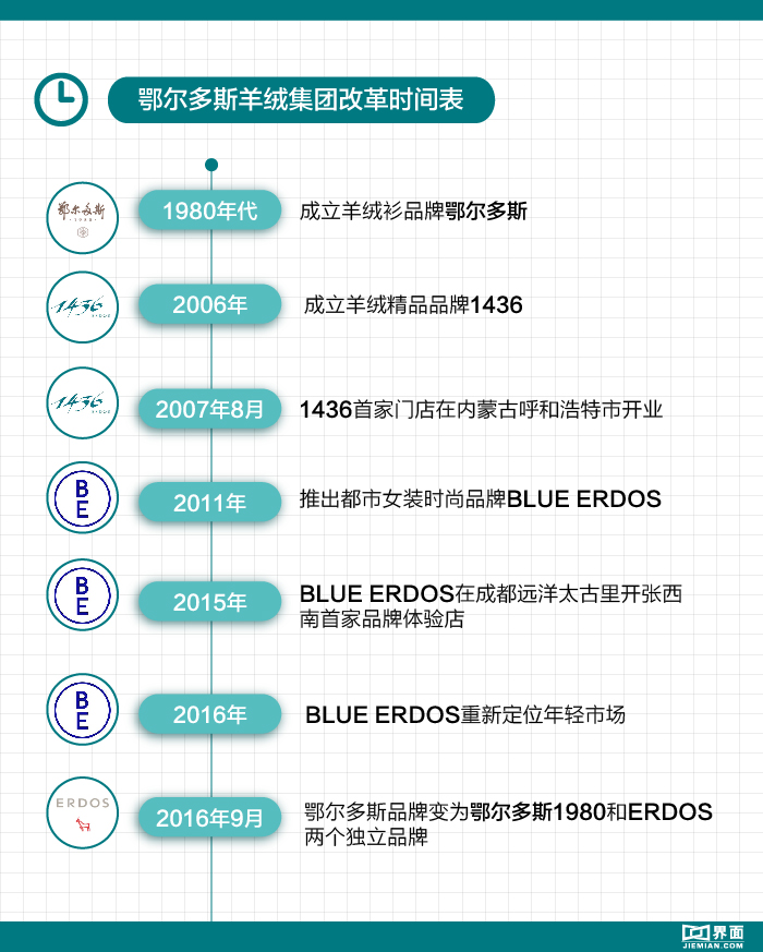 这样一来,鄂尔多斯品牌旗下就拥有了4条独立的产品线,除了上述两个,还有针对年轻人的BLUE ERDOS和高端品牌1436。