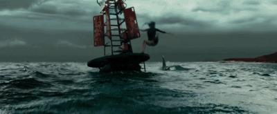 女主角被困在大海中间,必须凭借自己的冲浪知识、顽强毅力,逃出大白鲨的血盆大口。