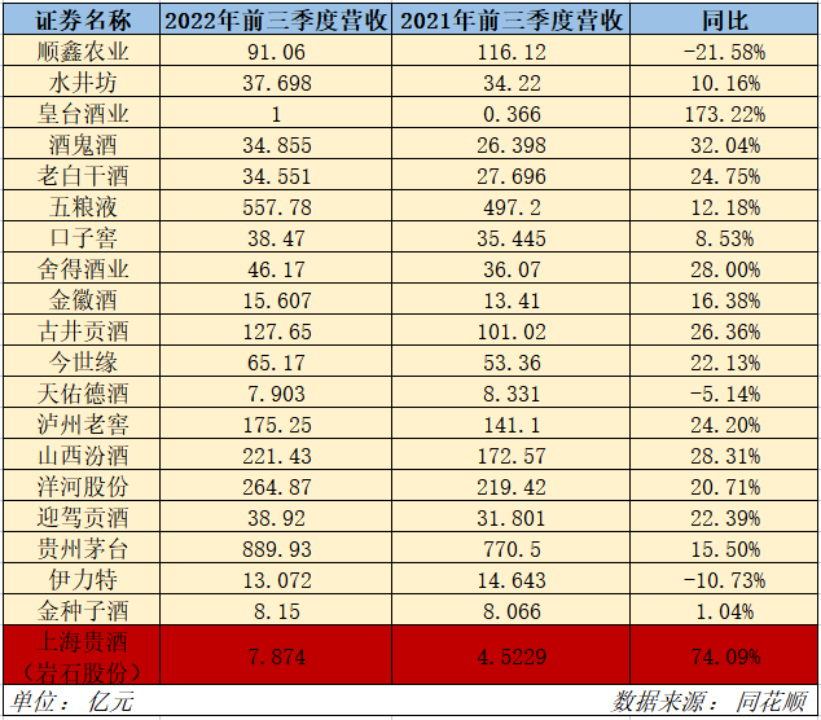 从营业收入上看,这已经是上海贵酒继半年报以后的又一次优异表现了。
