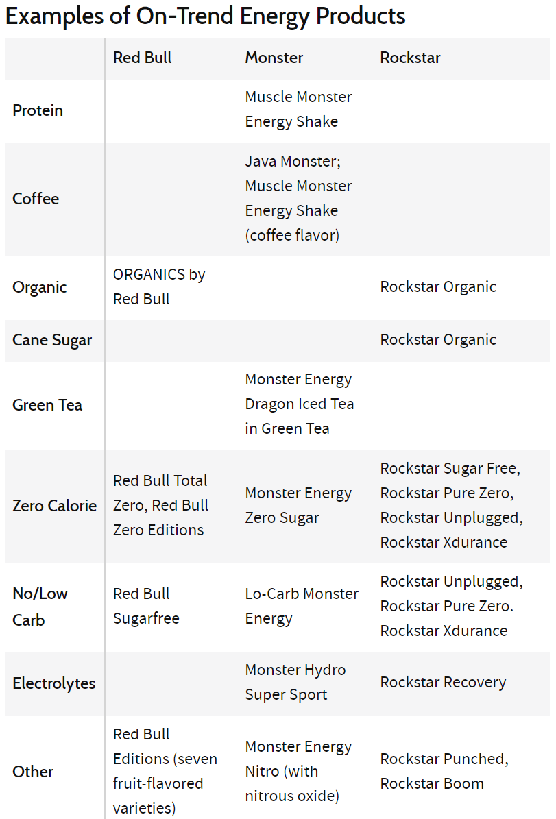 各大能量饮料品牌产品趋势 图源:Investopedia