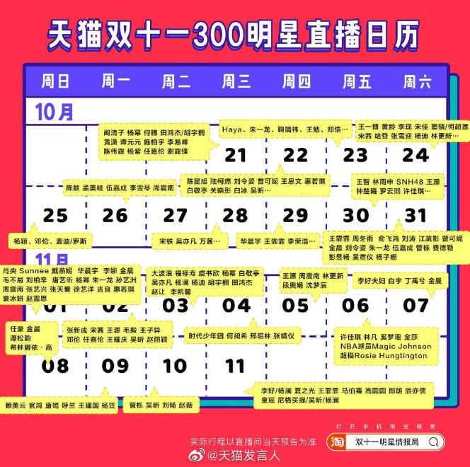 在其他平台,快手人气主播辛巴在10月18日官宣了双十一组合玩法,并直呼“为快手而战”,22日中午辛巴的直播预约人数超过千万。抖音平台由于双十一节奏整体晚于淘宝,头部主播节奏也整体相对晚于淘宝主播,预计双十一直播重点在11月初,目前也已经进入到紧锣密鼓的宣传期。
