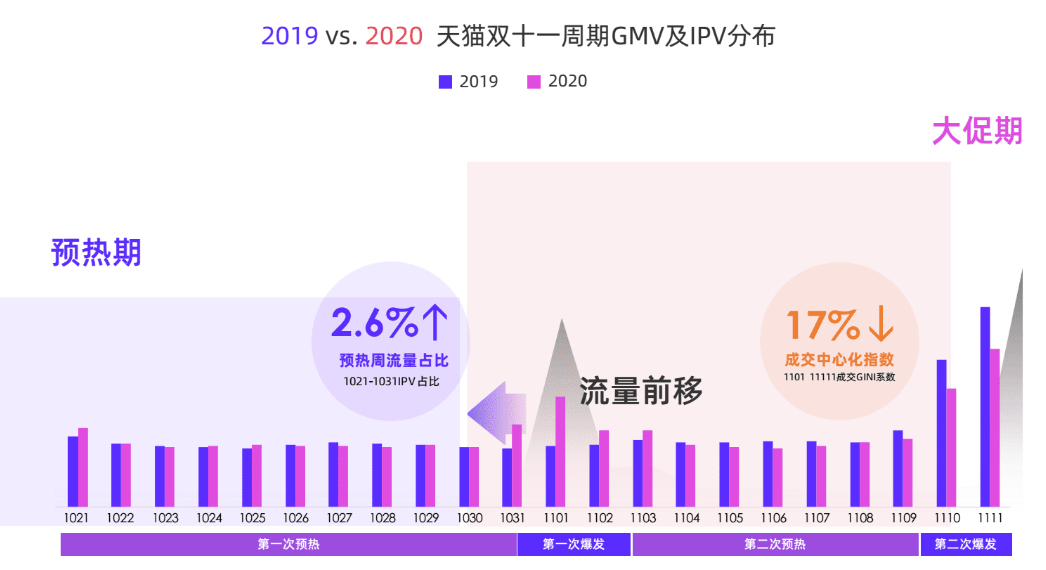 对于现在的电商平台来说,只创造双十一当天的热闹也未必是最好的商业策略,留住用户、保持热度才是更棘手的课题。在2021年阿里妈妈发布的《两次爆发背后的双11消费行为变迁》中提到,大促互动周期拉长有效提升了成交分布去中心化,而数量越来越多的电商购物节、日常化的电商直播使双十一不再追求昙花一夜,而是成为一种去中心化、周期性的促销经营手段,或许不疯狂的双十一和每天都是双十一才是未来的常态。