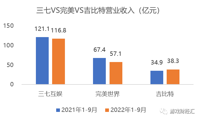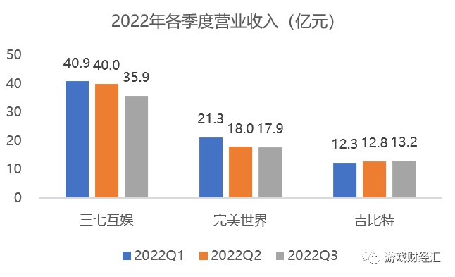 2022年前三季度,三七互娱、完美世界收入出现下滑,吉比特收入继续保持增长。