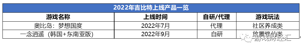 今年以来,吉比特仅上线了2款新游,首次亮相的新游仅《奥比岛:梦想国度》一款,产品数量较21年大幅缩水。从上线时间来看,2款新游上线时间集中于Q3。