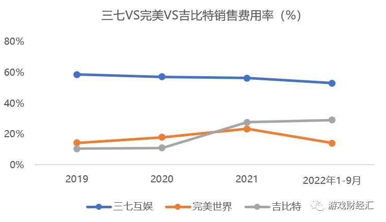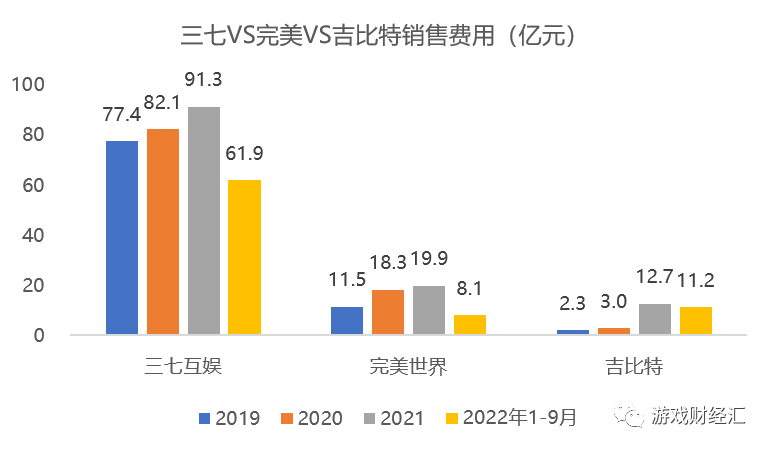 三七互娱、完美世界缩减销售费用,吉比特销售费用大幅提升。