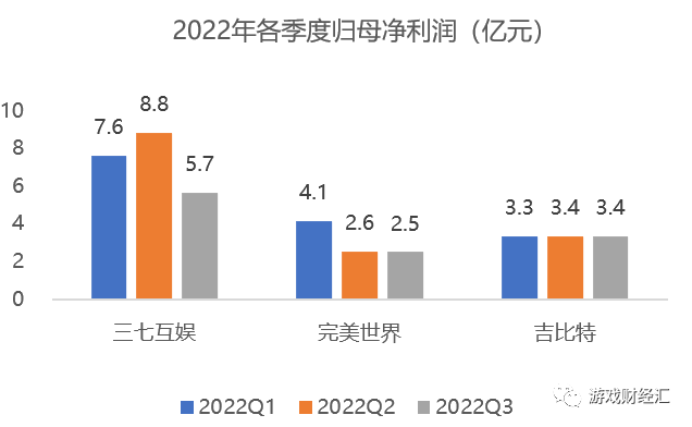 分季度来看,三七互娱、完美世界Q3收入和扣非净利较一二度均出现下滑,吉比特Q3收入环比微增,扣非净利环比基本保持不变。