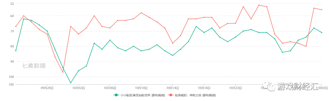 根据七麦数据,《小小蚁国》iOS端累计收入约161万美元(约1172万元),目前位列iOS畅销榜70名左右,排名略低于已上线一年的《蚁族崛起》。