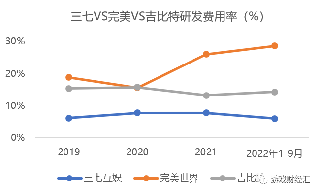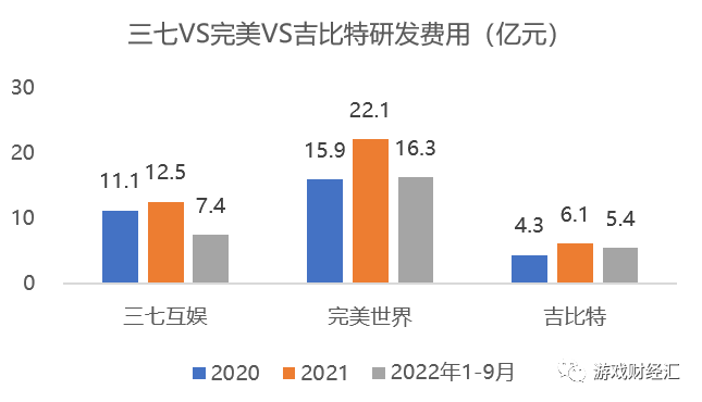 (二)研发费用分析:完美、吉比特加大研发投入,三七缩减研发支出