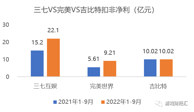 从扣非归母净利来看,三七互娱、完美世界前三季度扣非净利同比增幅均超过45%,吉比特基本上属于原地踏步。