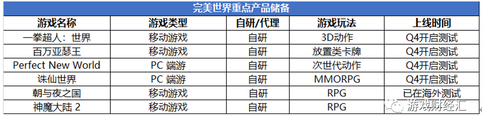 从产品上线节奏来看,完美世界Q1和Q3各上线3款游戏,Q2无新游上线。
