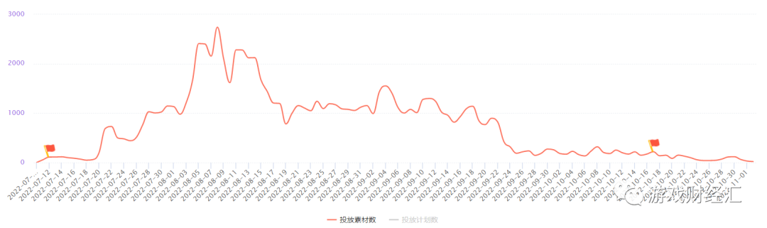 从投放趋势来看,三七互娱对《小小蚁国》一改往日“一波流”的投放打法。《小小蚁国》上线后,日均投放素材超2000组,累计投放超2.4万组素材。