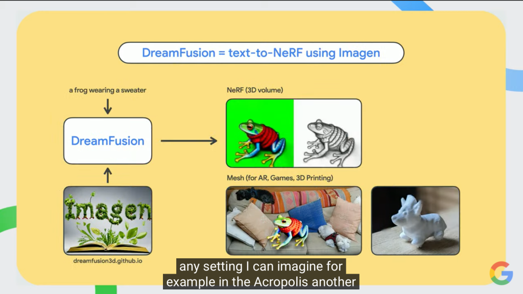 在从文本到3D合成方面,谷歌研发了一个预训练的2D文本到图像的扩散模型DreamFusion。给定一个描述生成,DreamFusion就能生成具有高保真外观、深度和法线且能够在不同光照条件下进行渲染的3D模型。