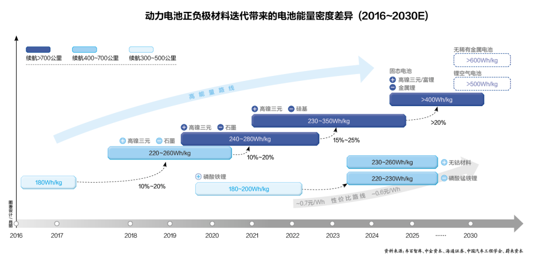 在高瓴创投看来,动力电池领域投资主线就是“降本增效”,这又可以分成两方面:物理层面的改善,通过电芯组合封装方式的改良提升电池性能——一般是制造厂商才有条件实施的,比如比亚迪和宁德时代分别推出的刀片电池和CTP电池;材料层面的创新,除了当前各大材料厂商的自我提升,很多新材料也会在现有供应体系之外出现。