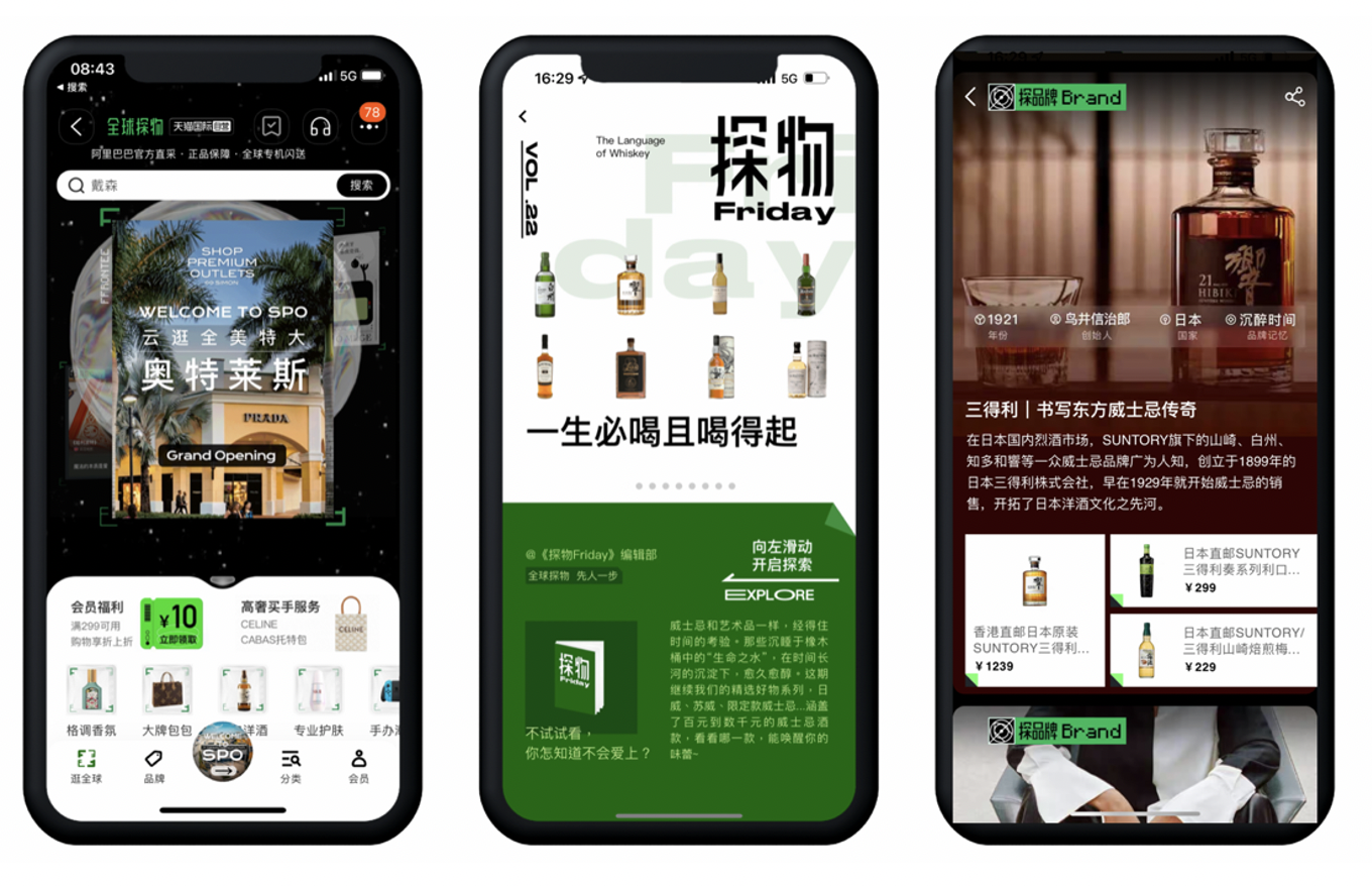 今年9月,天猫国际公布新业务策略,聚焦“好货、好服务、好逛”,此次“全球探物”的品牌升级及内容化尝试,也强调了特色的供给网络,例如威士忌、香水、时尚、数码、潮玩手办、户外运动等类目。