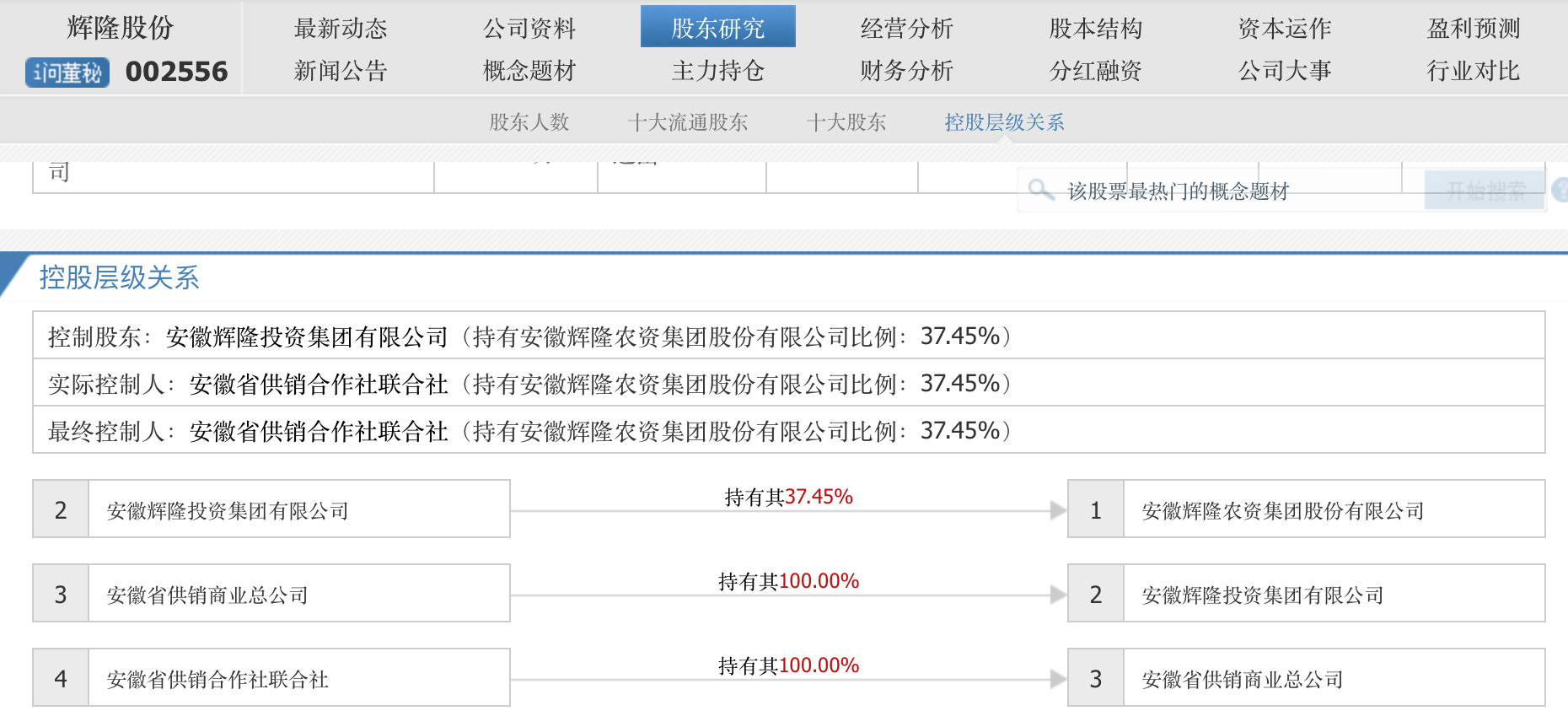 安徽方面,安徽省供销合作社联合社旗下有新力金融(600318.SH)和辉隆股份(002556.SZ)。