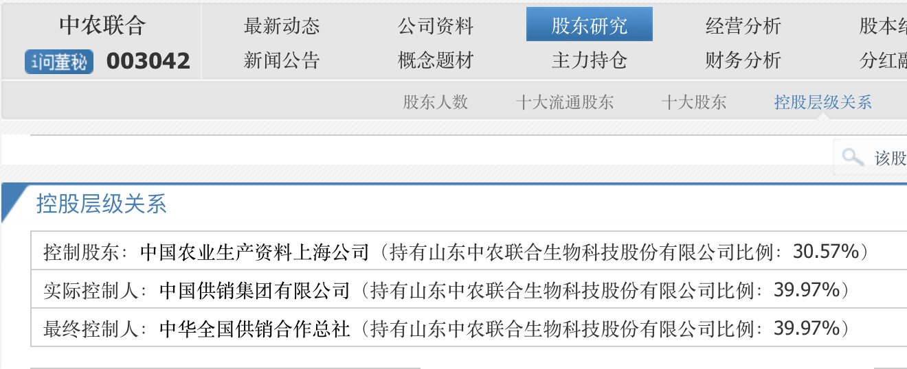 至于中农联合,其实际控制人为中国供销集团有限公司,最终控制人为中华全国供销合作总社。