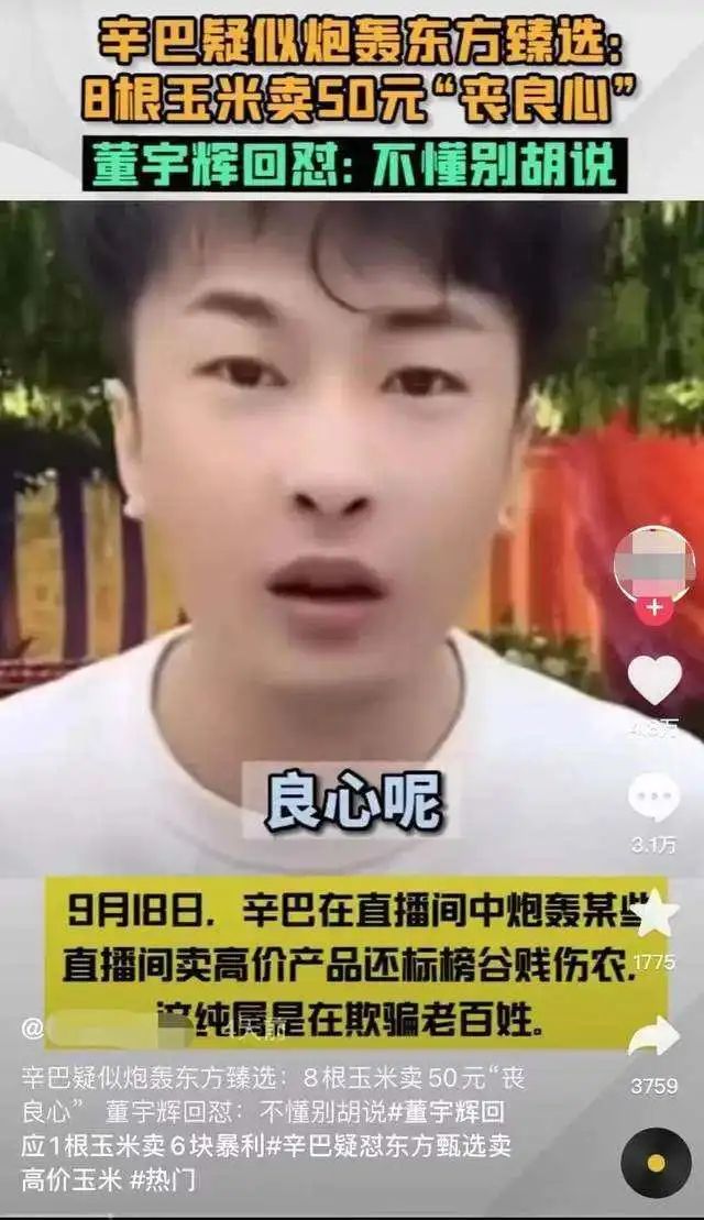 前不久,新东方旗下的东方甄选因为“一根玉米”引发的纷争被困在了舆论漩涡中心。起因是东方甄选直播间里,一根玉米卖到了6元钱,不久后知名主播辛巴则爆料,玉米收购价只要7毛钱一穗,卖价6块钱太丧良心。