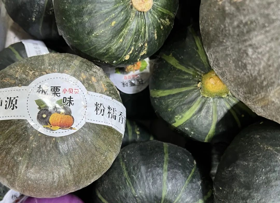 眼下,南瓜也到了味道最好吃的时候。记者看到,除了普通的长条南瓜,市场上最热门的当属贝贝南瓜。其产自新疆,个头小,圆滚滚,颜色有深浅区分,口感香润软糯,带有板栗香气,深受市民喜爱。